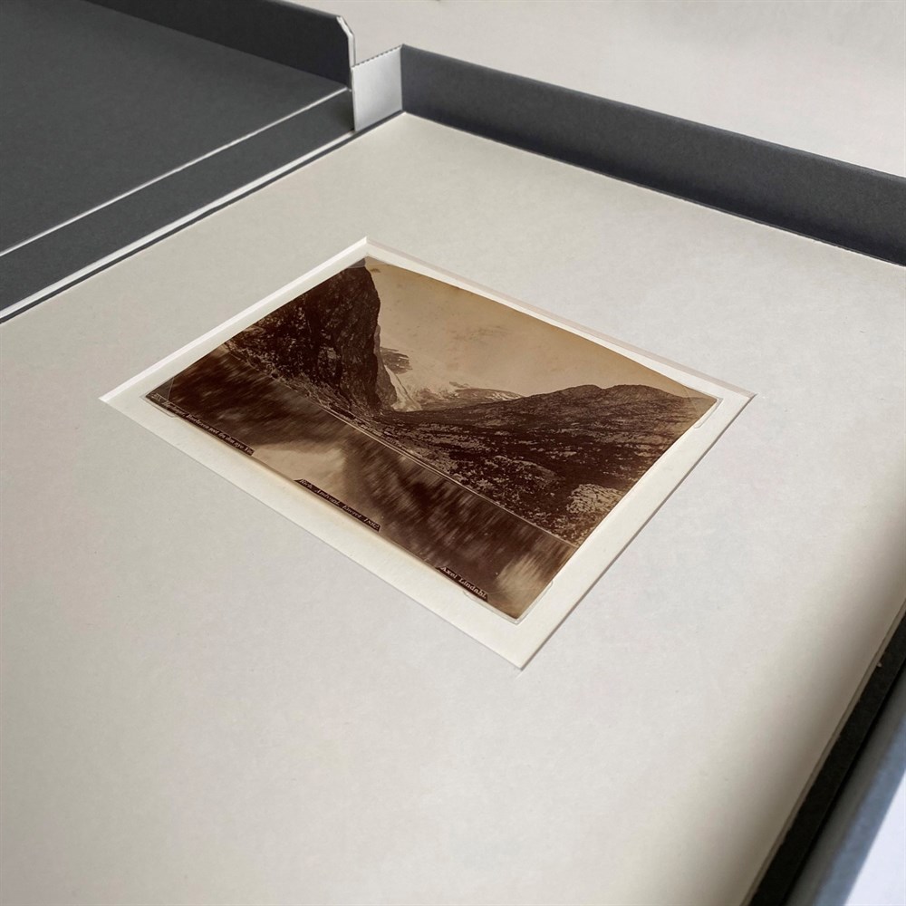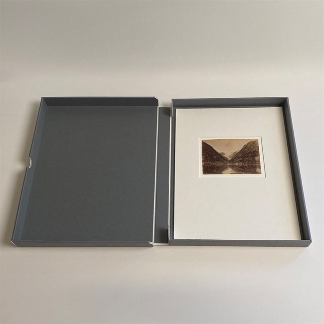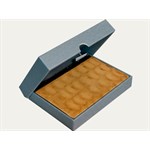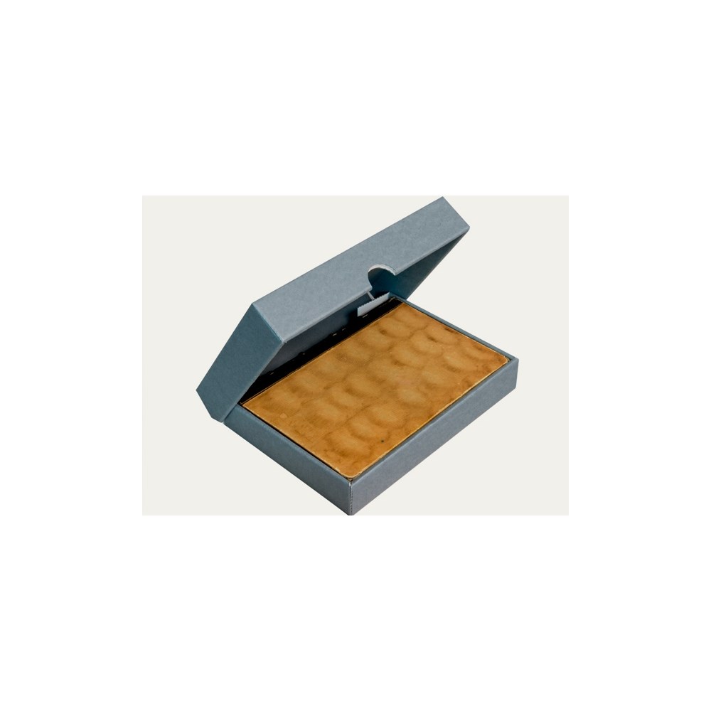 KS 17 esken er en solid og delikat clamshell eske i blå/grå farge, laget av 1,7 mm. syrefri, ligninfri og buffret bølgepapp.