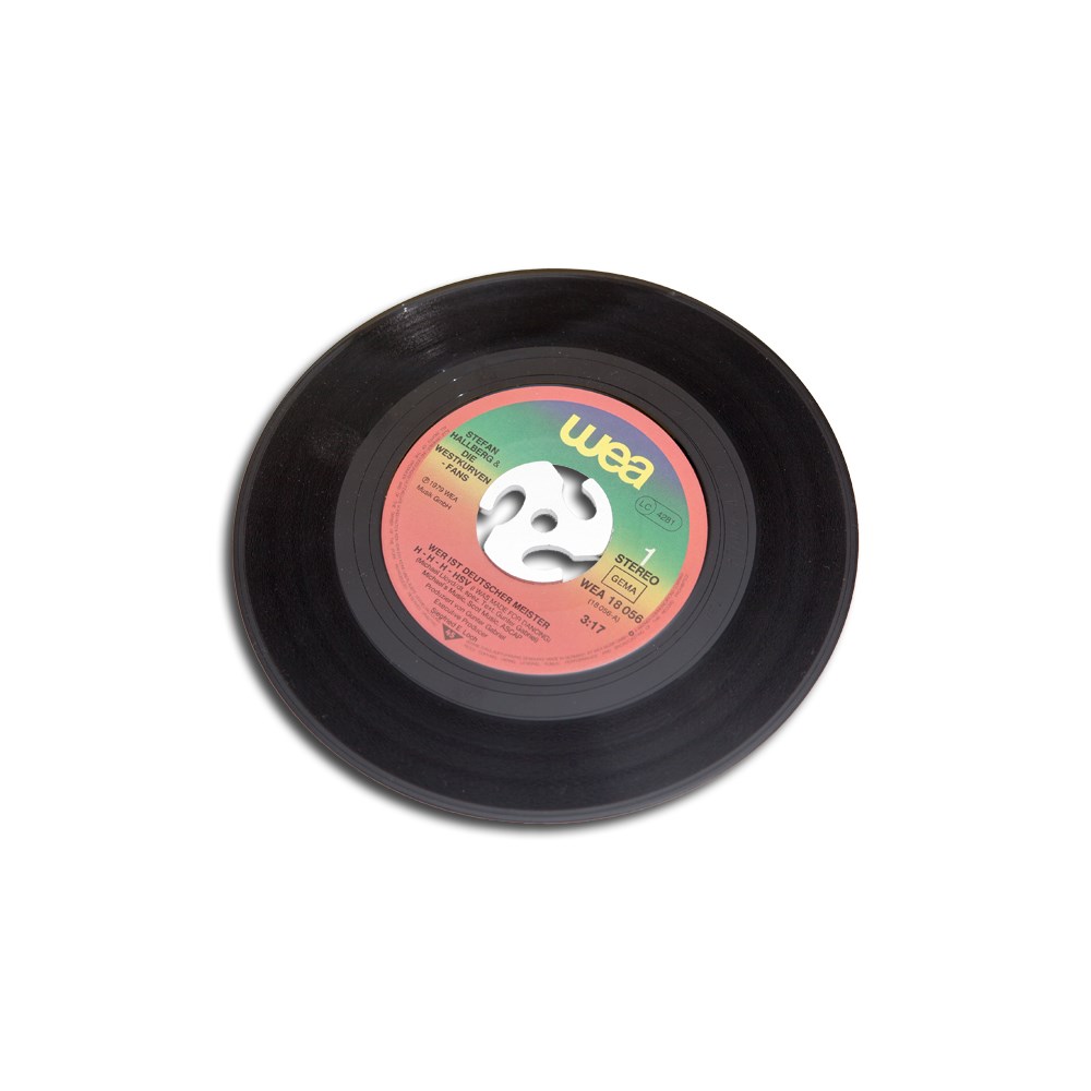 Adapteret er selvstrammende inne i hullet og får platen til å ligge riktig på platespilleren.