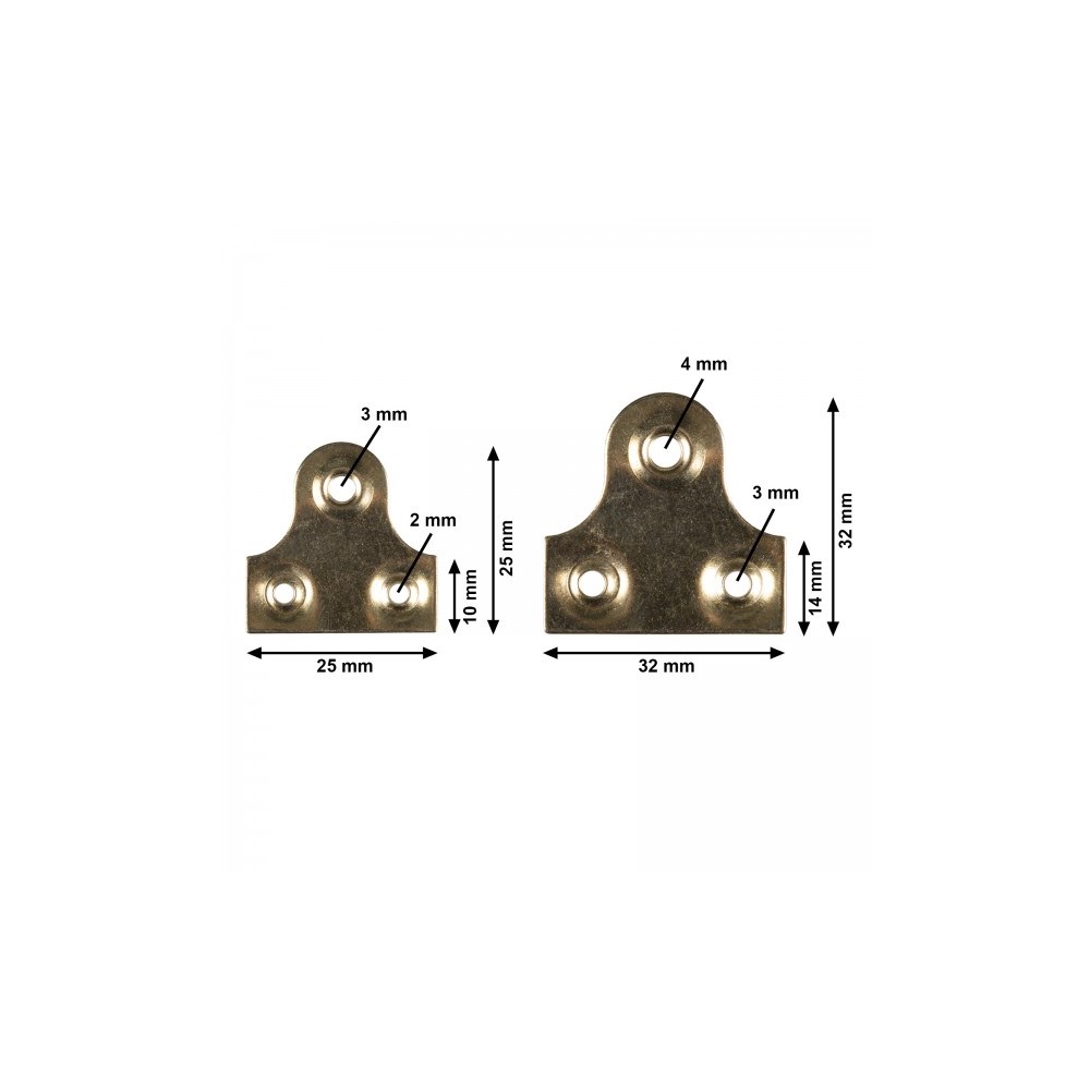 Laget av messingbelagt jern, egnet for festing til bilderamme samt rett på veggen.