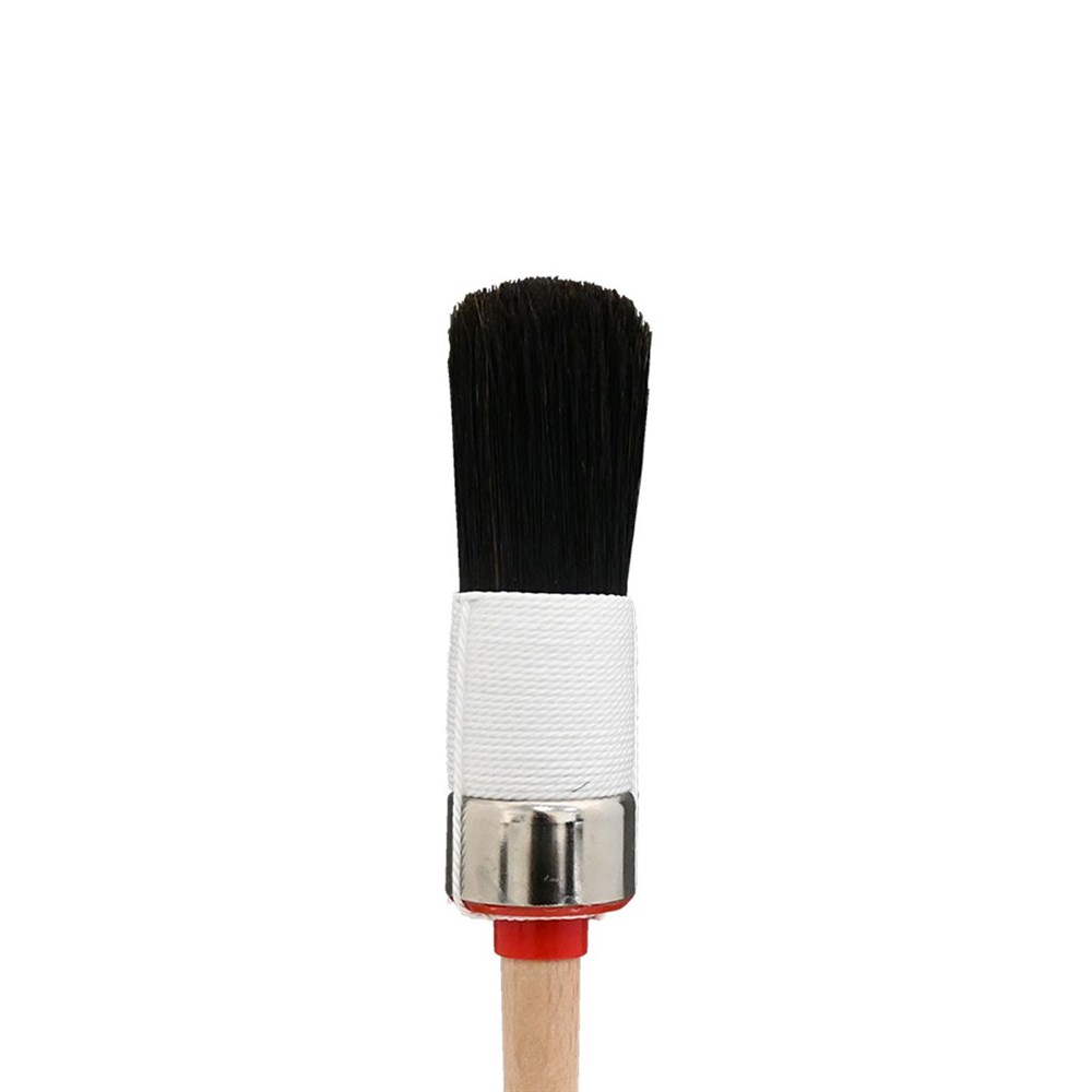 Ren, svart kinabørste, ekstra tykk, hvitt tofoldet trådbånd, vanlig trehåndtak, spesielt godt egnet for linoljemaling. Bustens lengde: 82mm.