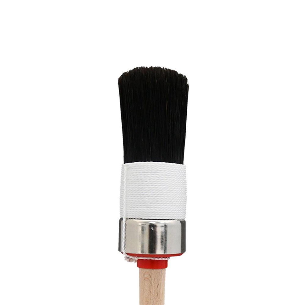 Ren, svart kinabørste, ekstra tykk, hvitt tofoldet trådbånd, vanlig trehåndtak, spesielt godt egnet for linoljemaling. Bustens lengde: 85 mm.