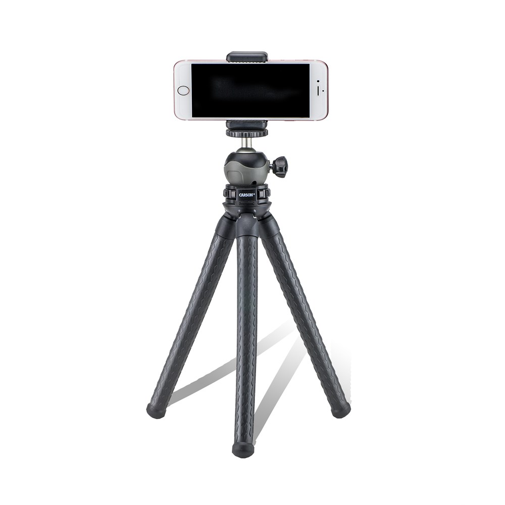 Dens 3 fullt fleksible ben kan bøye seg rundt ujevnt fotfeste, vri og hekte seg på tregrener eller gjerder, og justere på måter som tradisjonelle stativer ikke tillater. Det robuste gummigrepet gir enkel justering og bedre stabilitet på omtrent alle underlag.